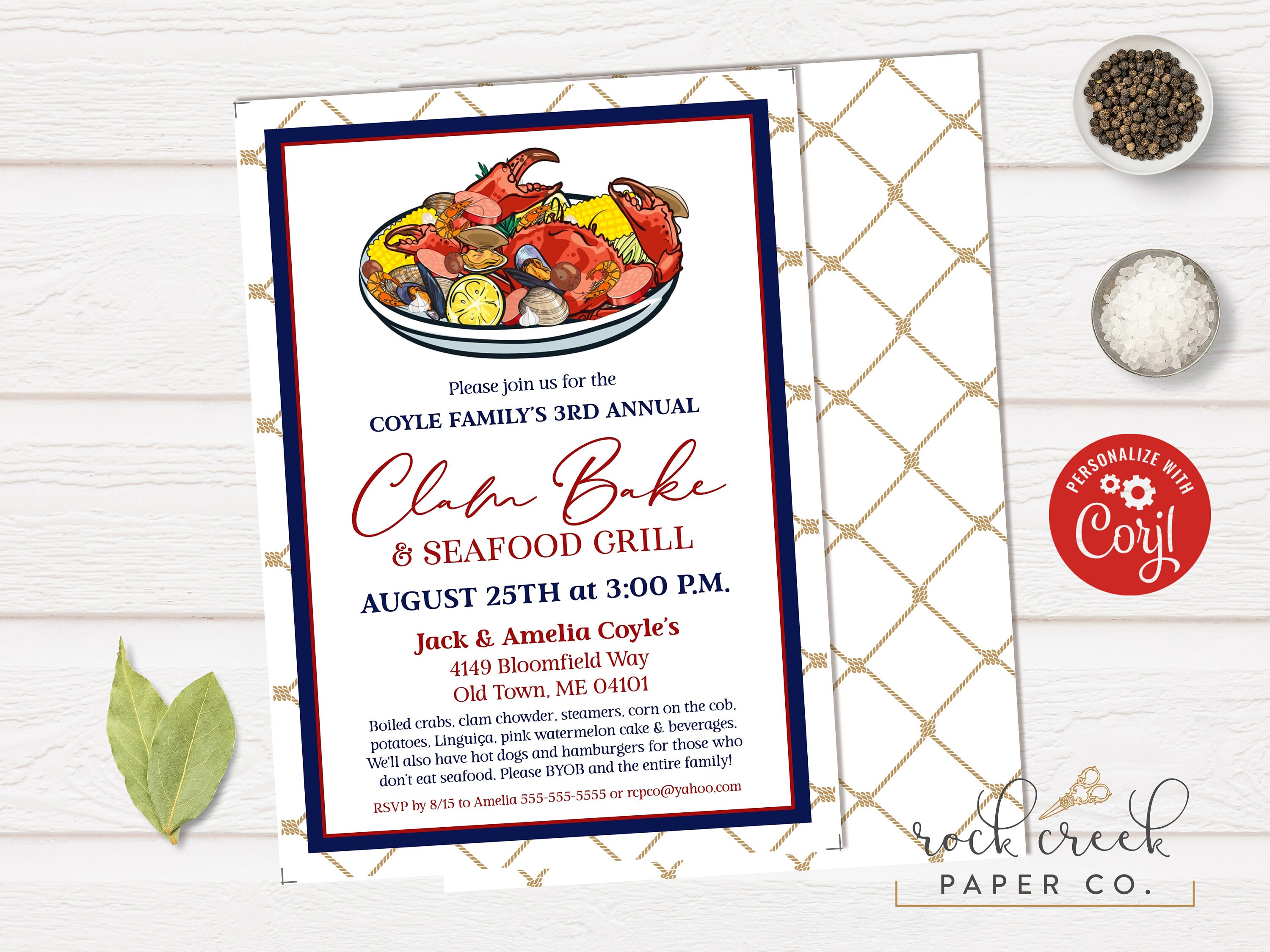 Clam Bake Invitation New England Clam Bake Lobster Boil Etsy